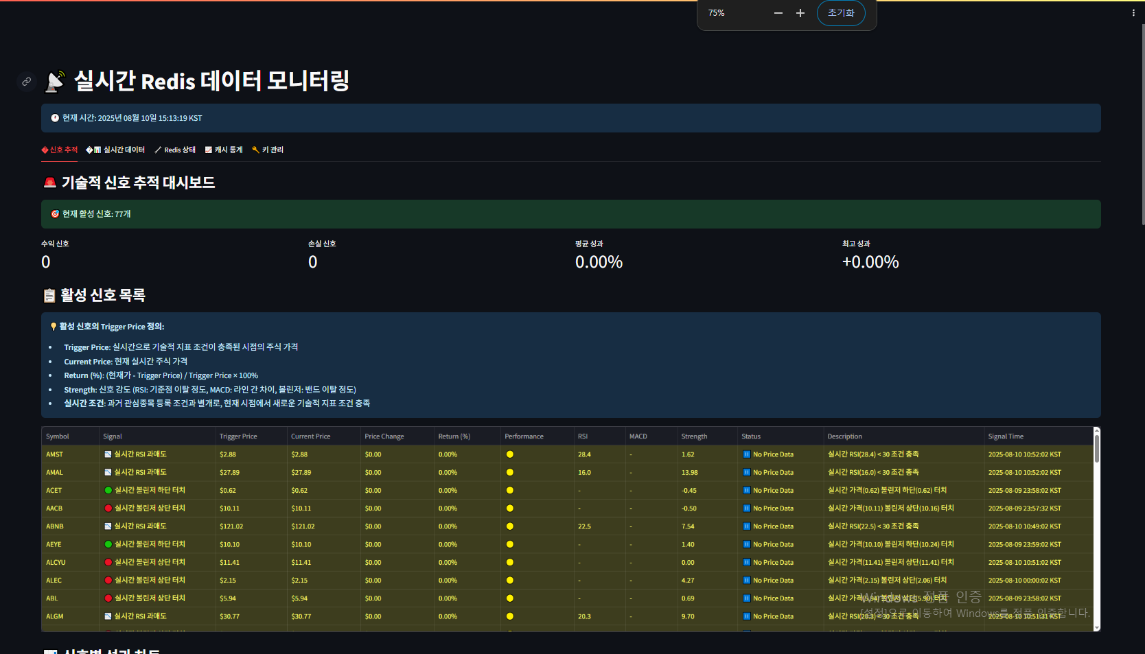 - 실시간 성과 추적: 신호 발생 후 수익/손실 모니터링